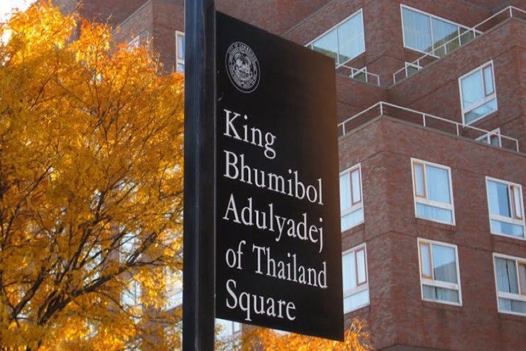 เมื่่อวันที่ 13 ตุลาคม 2560 วันที่ชาวไทยทั้งปวงโศกาอาดูรอย่างหาที่สุดเมื่อสำนักพระราชวังแถลงการณ์สวรรคต สมาคมคนไทยในบอสตัน (Thai association of Boston) ได้ออกหนังสือเชิญชวนคนไทยในบอสตันและมลรัฐใกล้เคียงร่วมน้อมถวายบังคม ณ จตุรัสภูมิพลอดุลยเดช ซึ่งเหล่าพสกนิกรชาวไทยต่างหลั่งไหลเข้ามาร่วมกันน้อมถวายบังคมอย่างไม่ขาดสาย จึงยิ่งทำให้สถานที่แห่งนี้เสมือนศุนย์รวมจิตใจของประชาชนชาวไทยในสหรัฐที่ต่างรำลึกในพระมหากรุณาธิคุณของพระมหากษัตริย์พระองค์เดียวในโลกที่ทรงพระราชสมภพ ที่สหรัฐอเมริกา