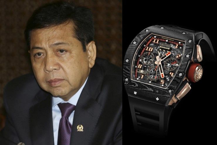 สเตรทไทมส์ - ดูเหมือนว่าแบรนด์นาฬิกาหรู "ริชาร์ดมิลล์" จะเป็นที่นิยมในหมู่นักการเมืองแถบอาเซียนไม่น้อยหน้าไทย โดยล่าสุดเมื่อวันที่ 13 ธ.ค. ที่ผ่านมาสื่อของสิงคโปร์รายงานว่า นายเสธยา โนวันโต อดีตประธานสภาผู้แทนราษฏรของอินโดนีเซีย ถูกจับกุมในข้อหารับสินบนโครงการจัดทำบัตรประชาชนแบบชิพการ์ด