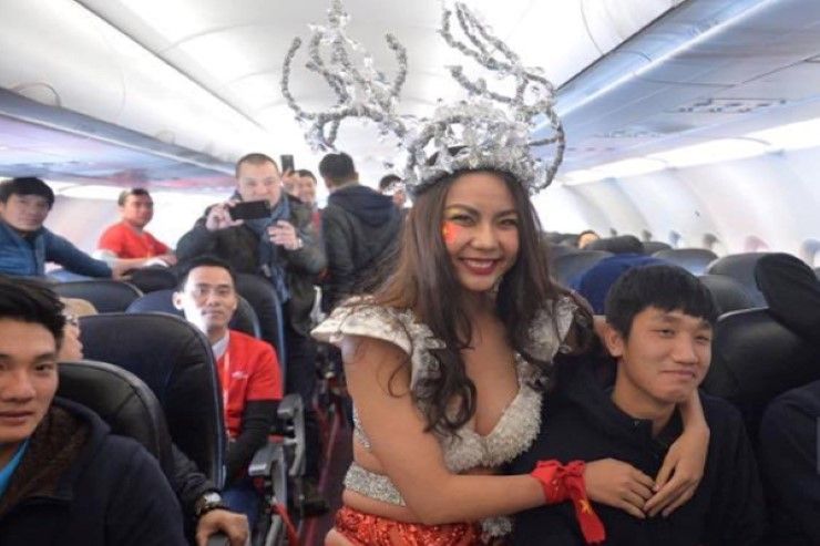 กรมการบินพลเรือนของเวียดนามสั่งปรับสายการบินเวียตเจ็ทซึ่งเป็นสารการบินราคาประหยัด เป็นจำนวนเงิน 40 ล้านดอง หรือประมาณ 50,000 บาท รวมถึงปรับหัวหน้าพนักงานต้อนรับบนเครื่องอีก 4 ล้านดอง จากการจัดงานฉลองต้อนรับนักเตะชุด U-23 ที่เพิ่งแข่งขังกับทีมชาติอุซเบกิสถาน ซึ่งถึงแม้ผลการแข่งขันจะออกมาแพ้ แต่ทางสายการบินก็ปลอบใจทีมนักเตะด้วยการจัดให้นางแบบสาวนุ่งน้อยห่มน้อยร่วมฉลองกับนักเตะบนเครื่องบินระหว่างบินกลับบ้าน