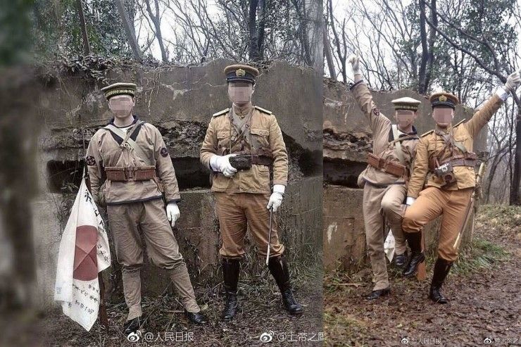 ซินหัว - โลกโซเชียลของจีนกำลังเป็นที่วิพากษ์วิจารณ์จากกรณีนักท่องเที่ยวชาย 2 คน ซึ่งไม่ทราบสัญชาติสวมชุดแต่งกายเป็นเครื่องแบบทหารญี่ปุ่น ยืนอยู่หน้าพื้นที่ภูเขาจื่อจิง ที่เคยเกิดเหตุสงคราม ในเมืองหนานจิง เมืองเอกของมณฑลเจียงซู สาธารณรัฐประชาชนจีน