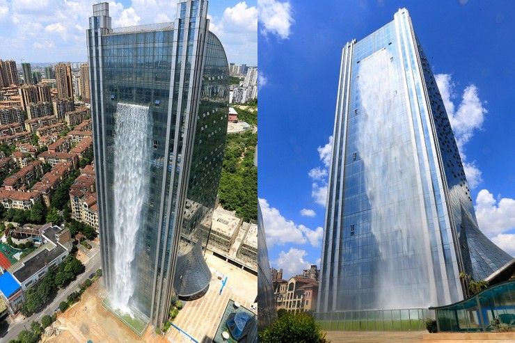 จีนโชว์เหนือ! สร้างน้ำตกจากตึกสูง