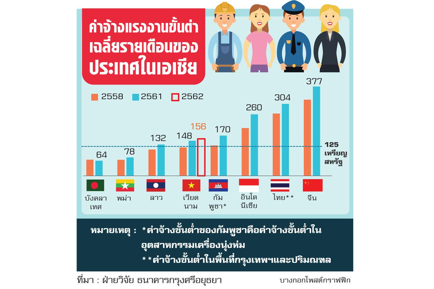 การปรับขึ้นค่าจ้างขั้นต่ำของเวียดนามจะครอบคลุมทุกพื้นที่ของประเทศ ทำให้อัตราใหม่อยู่ในช่วง 125-180 ดอลลาร์/เดือน โดยร้อยละ 90 ของพื้นที่ทั้งหมดของเวียดนามยังเป็นพื้นที่ที่มีอัตราค่าจ้างขั้นต่ำในระดับต่ำสุด คือ 125 ดอลลาร์/เดือน ซึ่งต่ำกว่าอัตราค่าจ้างขั้นต่ำเฉลี่ยของหลายประเทศในเอเชีย สะท้อนว่าเวียดนามยังมีความได้เปรียบ โดยเปรียบเทียบด้านต้นทุนแรงงานที่จะเอื้อให้ประเทศสามารถดึงดูดการลงทุนจากต่างประเทศได้ต่อไป