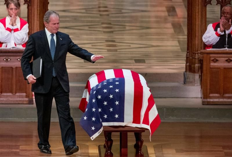 รายงานระบุว่า นายจอร์จ ดับเบิลยู บุช อดีตประธานาธิบดีคนที่ 43 บุตรชายของปธน.จอร์จ บุช ผู้ล่วงลับได้กล่าวสรรเสริญบิดาของว่าเป็น “รัฐบุรุษ” ผู้ยิ่งใหญ่และมีเกียรติ เป็นพ่อที่ดีที่สุด เท่าที่ลูกชายหรือลูกสาวคนหนึ่งจะมีได้