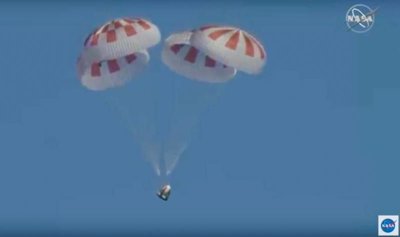 "ดราก้อน" แคปซูลอวกาศรุ่นใหม่ของ 'สเปซเอ็กซ์' ประสบความสำเร็จทดสอบเดินทางกลับสู่โลก