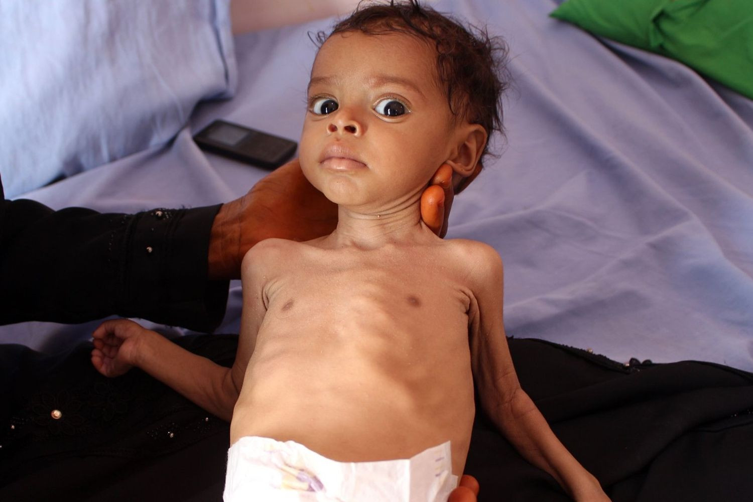 เด็กๆ ชาวเยเมนกำลังทุกข์ทรมานจากภาวะขาดสารอาหาร อันเนื่องจากสงครามกลางเมืองของเยเมนที่ยืดเยื้อมานานหลายปี คร่าชีวิตผู้คนหลายหมื่นคนส่วนใหญ่เป็นพลเรือน อีกหลายล้านคนประสบกับความอดอยากเนื่องจากขาดแคลนอาหาร จนองค์การสหประชาชาติกล่าวว่าสิ่งที่เกิดขึ้นในเยเมนเป็นวิกฤตด้านมนุษยธรรมที่เลวร้ายที่สุดในโลก ในภาพเป็นเด็กทารกที่ผอมโซ ที่คลินิกแห่งหนึ่งซึ่งดำเนินการโดยองค์กรด้านมนุษยธรรมในเมืองท่าโฮเดดา ภาพถ่ายเมื่อวันที่ 3 พฤศจิกายน 2019 ภาพถ่ายโดย ESSA AHMED / AFP
