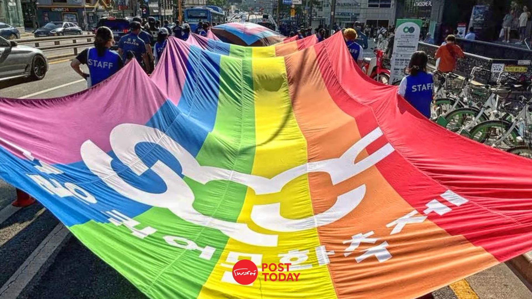 “คุณจะเห็นป้ายแสดงความเกลียดชังมากมายที่อยู่ข้างหลังฉัน เช่นเดียวกับป้ายที่สนับสนุนเราทางด้านขวาของเรา” Yang Sun-woo หัวหน้าผู้จัดงาน Seoul Queer Culture Festival กล่าว