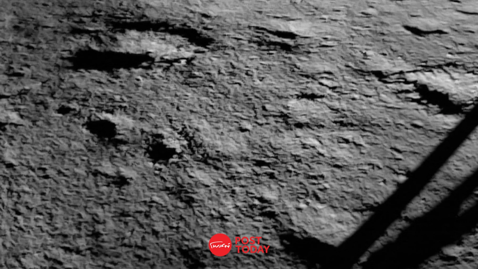 ISRO แชร์ภาพจากยานอวกาศที่แสดงพื้นผิวดวงจันทร์ ขาและเงาของยานขณะลงจอด