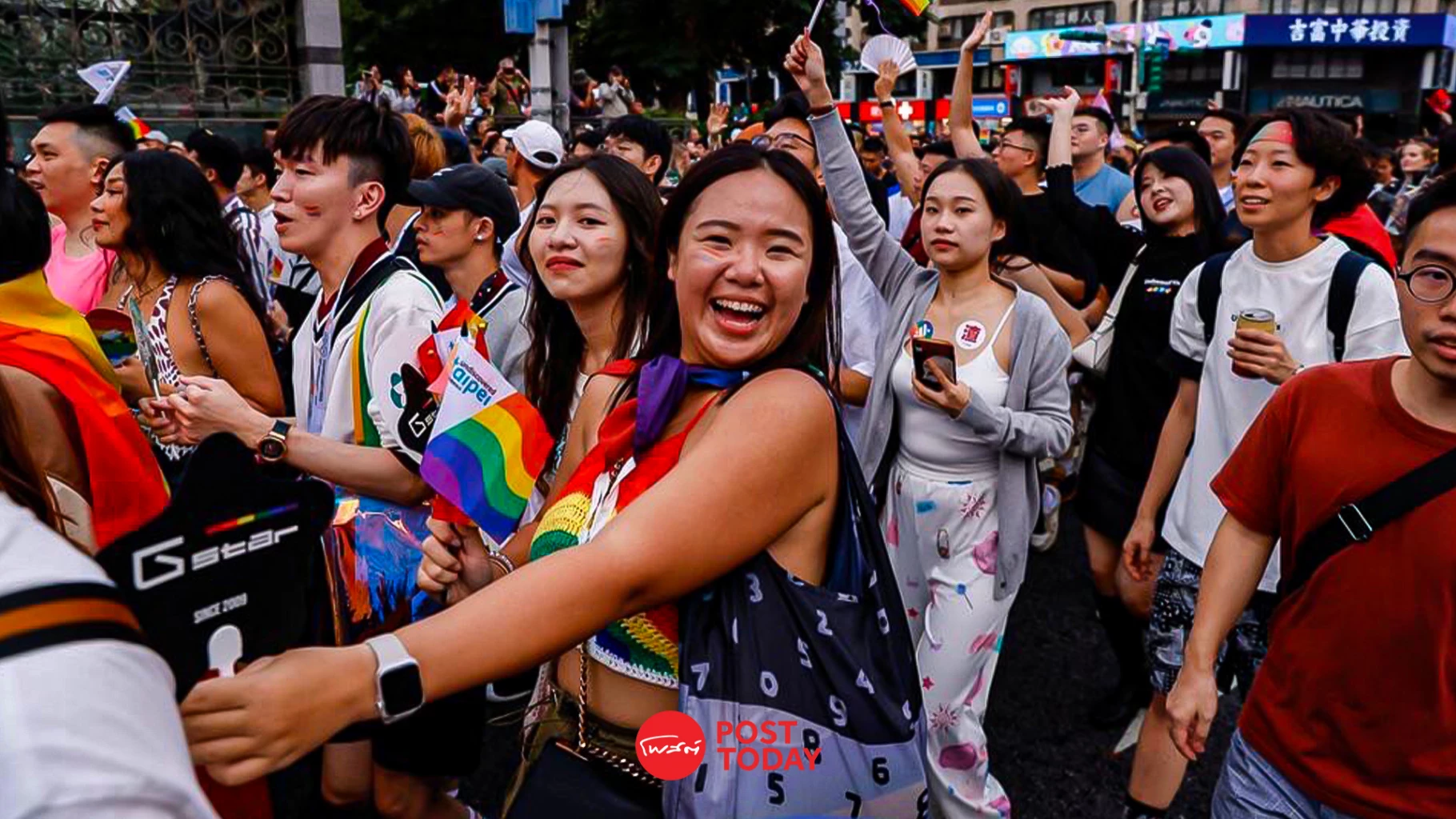 ถนนในใจกลางกรุงไทเปเต็มไปด้วยขบวนพาเหรดประจำปี ซึ่งนับเป็นครั้งที่ 21 นับตั้งแต่เริ่มขบวนพาเหรด รวมถึงนักเต้นอะโกโก้และแดร็กควีนด้วย