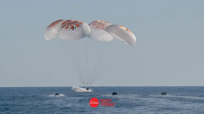 ลูกเรือ 4 คน ซึ่งเป็นส่วนหนึ่งของภารกิจหมุนเวียนนักบินอวกาศ Crew-9 ของ NASA ได้กลับเข้าสู่ชั้นบรรยากาศโลกอีกครั้ง ด้วยการใช้ชั้นบรรยากาศของโลกและร่มชูชีพสองชุด ยานจึงชะลอความเร็วการโคจรจากประมาณ 17,000 ไมล์ต่อชั่วโมง เป็น 17 ไมล์ต่อชั่วโมงก่อนลงสู่ผิวน้ำ ประมาณ 50 ไมล์จากชายฝั่งอ่าวฟลอริดา
