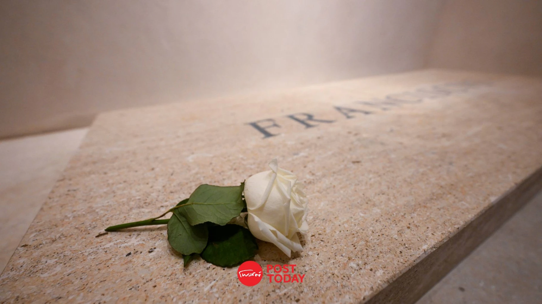 พระศพของสมเด็จพระสันตะปาปาฟรานซิสประดิษฐานภายในหีบหินอ่อนอันเรียบง่าย ณ โถงข้างของมหาวิหาร มีเพียงพระนาม “Franciscus” จารึกเป็นภาษาละตินเหนือหลุมพระบรมศพ พร้อมทั้งมีสำเนาของไม้กางเขนธรรมดาที่พระองค์ทรงเคยประทานไว้แขวนอยู่เหนือซุ้มพระศพ