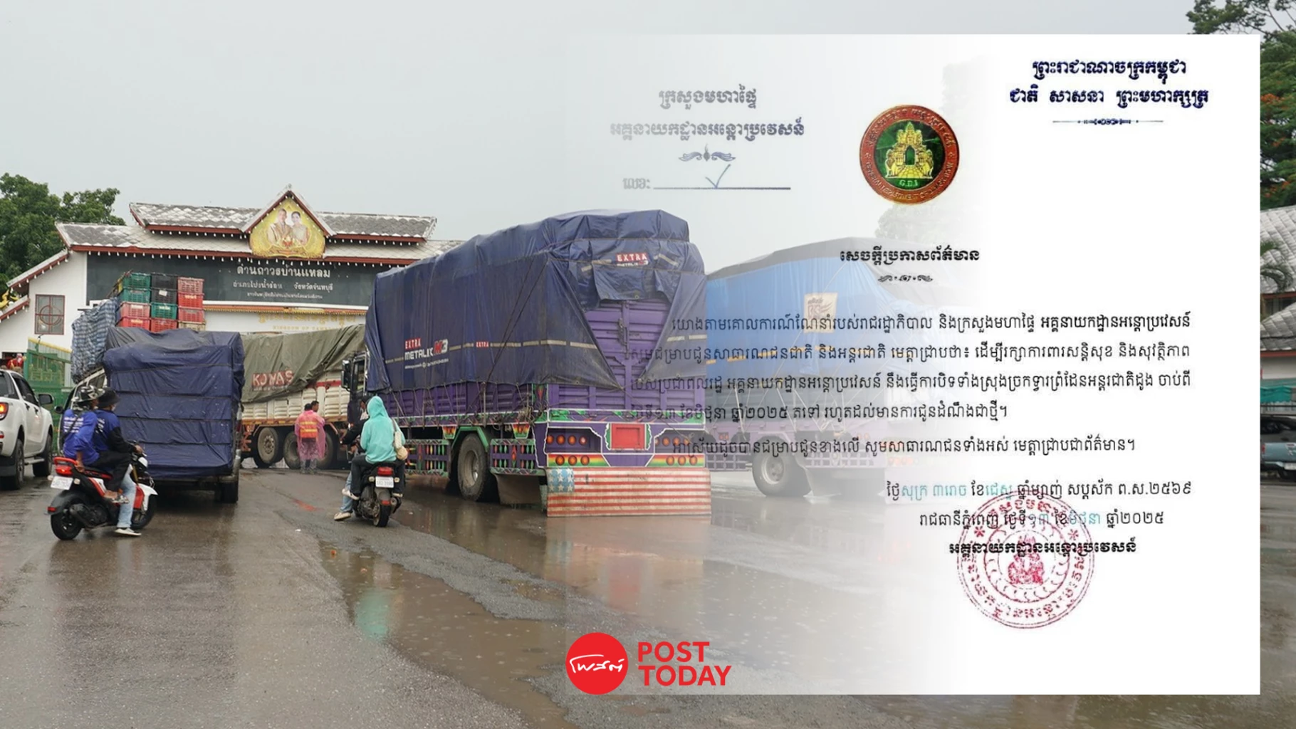 “ตามคำสั่งของรัฐบาลแห่งราชอาณาจักรกัมพูชาและกระทรวงมหาดไทย กรมตรวจคนเข้าเมืองขอแจ้งให้ประชาชนทั้งในและต่างประเทศทราบว่า เพื่อประกันความมั่นคงและความปลอดภัยของประชาชน ด่านชายแดนสากลดาอุงจะปิดการใช้งานโดยสมบูรณ์ตั้งแต่วันที่ 13 มิถุนายน 2568 เป็นต้นไป จนกว่าจะมีประกาศเปลี่ยนแปลง” แถลงการณ์ระบุ