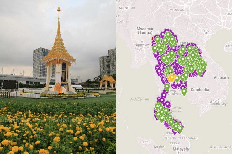 รวมพิกัดจุดถวาย"ดอกไม้จันทน์"ทั่วประเทศบนแผนที่กูเกิล ใช้นำทางได้ทันที