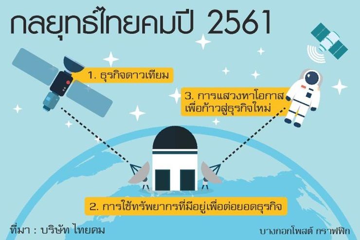 ปี 2561 ไทยคมจะเปลี่ยนรูปแบบองค์กร จากการเป็นผู้ให้บริการดาวเทียม มาเป็นผู้ให้บริการด้านแพลตฟอร์มดิจิทัล เพื่อสอดรับ กับการเติบโตทางด้านเทคโนโลยี ตอบสนองพฤติกรรมของผู้บริโภคที่เปลี่ยนไป