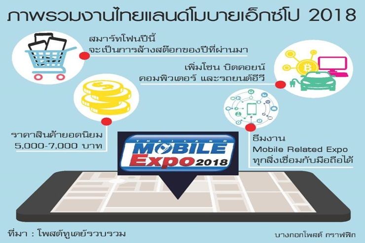 งานมหกรรมมือถือที่ใหญ่ที่สุดของไทยคงหนีไม่พ้น ไทยแลนด์ โมบาย เอ็กซ์โป ครั้งที่ 29 ที่จะมีขึ้นในวันที่ 15-18 ก.พ. 2561 ที่ศูนย์การประชุมแห่งชาติสิริกิติ์ ถือเป็นงานแรกของปีที่น่าจะสะท้อนกำลังซื้อของผู้บริโภคได้ไม่น้อย