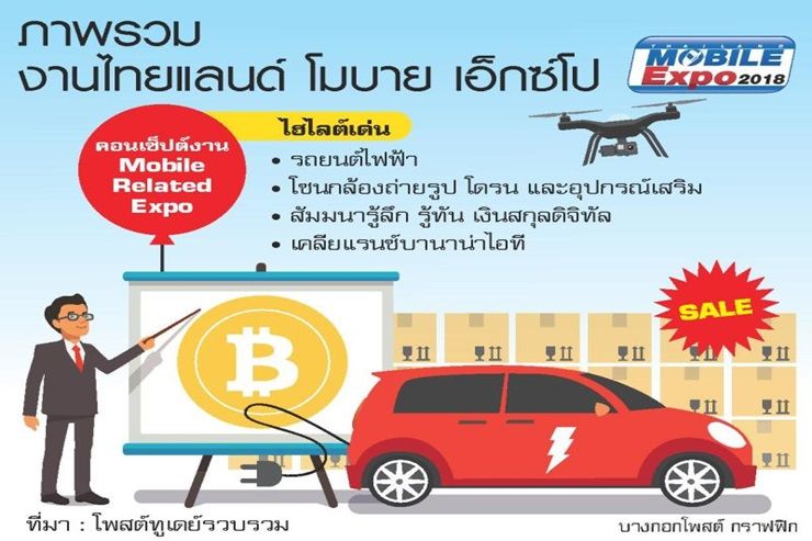 งานไทยแลนด์ โมบายล์ เอ็กซ์โป 2018 มีการแสดงสินค้าเทคโนโลยีเกี่ยวกับอุปกรณ์ไอโอที แมชีนเลิร์นนิ่ง และรถยนต์ไฟฟ้า มาเป็นกลยุทธ์ในการจัดแสดงภายในงานมากขึ้น