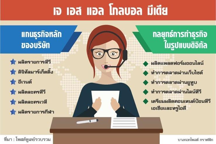 รติวัลคุ์ ธนาธรรมโรจน์ ประธานเจ้าหน้าที่บริหาร บริษัท เจ เอส แอล โกลบอล มีเดีย ผู้ผลิตและออกแบบคอนเทนต์ดีไซเนอร์ กล่าวว่า แนวทางการดำเนินธุรกิจในปีนี้ บริษัทจะให้ความสำคัญกับการขยายธุรกิจดิจิทัลอย่างจริงจัง เพื่อผลักดันให้เป็นแหล่งรายได้ หลัก ทดแทนรายได้ในส่วนบริหารเวลาที่ลดลงภายหลังได้รับผลกระทบจากปัจจัยลบทางด้านเศรษฐกิจและอุตสาหกรรมโดยรวม