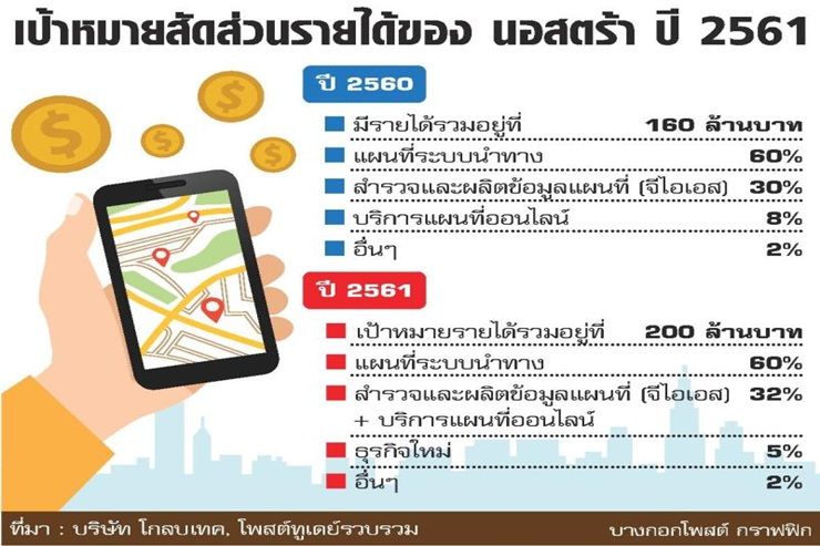 อย่างไรก็ตาม ปี 2561 บริษัทคาดว่าจะมีรายได้รวมอยู่ที่ 200 ล้านบาท จากปีก่อนอยู่ที่ 160 ล้านบาท จากปัจจัยองค์กรธุรกิจต่างๆ ให้ความสำคัญกับไอโอทีเพิ่มมากขึ้น รวมถึงความร่วมมือกับพันธมิตรใหม่ดังกล่าว ประกอบกับปริมาณความต้องการใช้ระบบแผนที่นำทางเทคโนโลยีเทเลเมติกส์เป็นอุปกรณ์พื้นฐานเพื่อ เป็นจุดขายรถยนต์ของผู้ประกอบการ ในปีนี้คาดว่าอุตสาหกรรมจะเติบโต อีกทั้งการนำข้อมูลด้านโลเกชั่นมาใช้ประกอบการวิเคราะห์ในเชิงธุรกิจมากขึ้น ขยายฐานผู้ใช้งานในกลุ่มองค์กรขนาดกลางและเล็ก นอกจากนั้นจะมีการปรับปรุงข้อมูลแผนที่ให้ดีขึ้นต่อเนื่อง รวมถึงภายในอาคาร และบริการขนส่งสาธารณะ