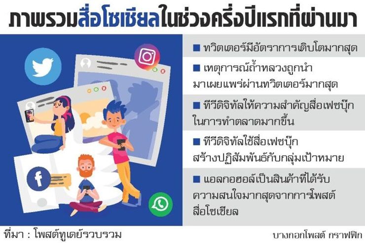ปัจจุบันคนไทยหันมาเสพข้อมูลข่าวสาร ผ่านสื่อโซเชียลมีเดีย ทั้งเฟซบุ๊ก อินสตาแกรม หรือ ทวิตเตอร์ ทำให้มีอัตราการขยายตัวอย่างต่อเนื่อง