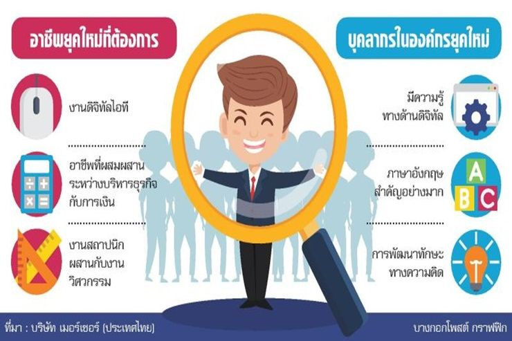 เอก อายะวงศ์ กรรมการผู้จัดการ บริษัท เมอร์เซอร์ (ประเทศไทย) ธุรกิจที่ปรึกษาทางด้านทรัพยากรบุคคล เปิดเผยว่า ปัจจุบันธุรกิจเข้าสู่ยุคดิจิทัลมากขึ้น จึงเกิดการตั้งคำถามขึ้นมาว่าองค์กรขนาดใหญ่ในประเทศไทยในปี 2562 จะมีการลดจำนวนคนในการทำงานลง หรือไม่ ซึ่งพบว่าจำนวน 1 ใน 3 ยังมีความต้องการบุคลากรเพิ่มมากขึ้น หรือคิดเป็น 31% ขณะที่ตัวเลข 2 ใน 3 ขององค์กรยังต้องการเวต แอนด์ ซี หรือรอดู รวมไปถึงการใช้ทรัพยากรบุคคลของบริษัทตนเองให้เต็มที่ก่อนถึง 61% ก่อนที่จะมีการจ้างงานใหม่ และสัดส่วน 8% ขององค์กรมีแผนจะลดจำนวนการจ้างงานลง อย่างเช่น สถาบันการเงิน ธนาคารที่มีการปิดสาขาหรือพนักงานที่สามารถทำงานได้หลากหลายมากกว่าการเป็นแค่พนักงานเทลเลอร์
