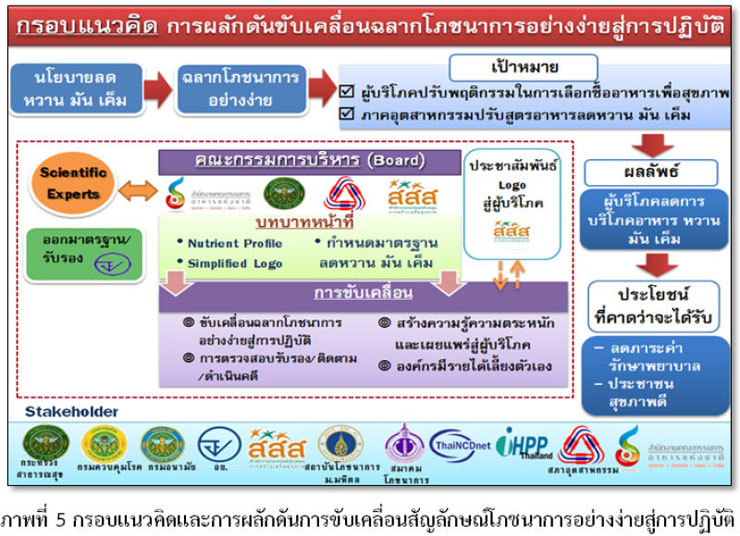 2.ในด้านความรู้ความเข้าใจในเรื่องการพัฒนาอุตสาหกรรมอาหาร การกำหนดหลักเกณฑ์ทางด้านวิทยาศาสตร์อาหาร โดยเมื่อผู้ประกอบการเข้ามาร่วมโครงการพัฒนาและส่งเสริมการใช้สัญลักษณ์โภชนาการอย่างง่าย สำหรับเป็นข้อมูลการตัดสินใจเลือกผลิตภัณฑ์อาหารของผู้บริโภคเพื่อลดการบริโภคน้ำตาล โซเดียม และไขมันเพื่อขับเคลื่อนประชาสัมพันธ์สัญลักษณ์โภชนาการ แล้วมั่นใจว่า ผู้ประกอบการจะพัฒนาอาหารให้ได้คุณค่าตามค่าโภชนาการอย่างเหมาะสม โดยผู้ประกอบการสามารถสมัครได้ฟรี ดูรายละเอียดได้ที่เว็บไซต์ http://healthierlogo.com หรือ www.ทางเลือกสุขภาพ.com