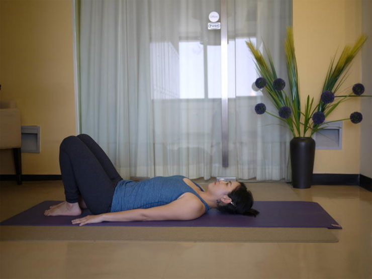 1. นอนหงายคว่ำฝ่ามือไว้ข้างลำตัวชันเข่าขึ้น