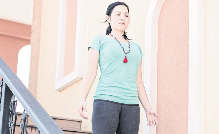 1.เริ่มต้นด้วยท่าภูเขา หายใจเข้าออก2 รอบลมหายใจ เพื่อเตรียม
