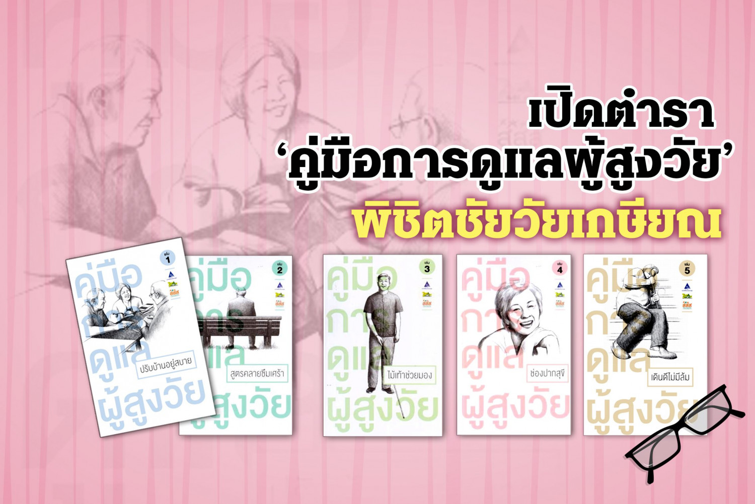 ศึกษาวิธีการใช้ชีวิตวัยเกษียณให้สำราญ ผ่านตำรา 5 เล่มที่เข้าใจง่าย ปฏิบัติได้ไม่ยาก จัดทำโดยสถาบันวิจัยระบบสาธารณสุข (สวรส.) ร่วมกับ มูลนิธิสถาบันวิจัยและพัฒนาผู้สูงอายุไทย (มส.ผส.) และสำนักงานกองทุนสนับสนุนการสร้างเสริมสุขภาพ (สสส.) ครอบคลุมสุขภาพช่องปาก สุขภาพจิต การทรงตัว การมองเห็น และที่อยู่อาศัย