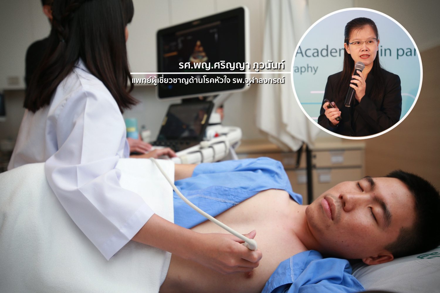 “การซักประวัติ ตรวจร่างกาย และการใช้หูฟังฟังเสียงหัวใจของแพทย์เป็นวิธีการนำมาซึ่งการวินิจฉัยโรคหัวใจ ที่ดี แต่บ่อยครั้งอาจไม่เพียงพอ ต้องอาศัยการตรวจเพิ่มเติมที่ละเอียดมากขึ้น ปัจจุบันมีการตรวจเพิ่มเติมทางด้านหัวใจหลายประเภท และมีจุดเด่นและข้อจำกัดแตกต่างกัน ดังนั้น ผู้ป่วยบางรายอาจต้องได้รับการตรวจเพิ่มเติมมากกว่าหนึ่งชนิด เช่น การตรวจคลื่นไฟฟ้าหัวใจหรือ EKG; การตรวจวิ่งสายพานหรือ Stress Test; การตรวจทางภาพถ่ายรังสีแบบธรรมดา จนถึง เอ็กซ์เรย์คอมพิวเตอร์ หรือ เอ็กซเรย์คลื่นแม่เหล็กไฟฟ้า หรือ CT scan cardiac MRI; การฉีดสีหลอดเลือดหัวใจ และการตรวจที่จัดได้ว่าเป็นหนึ่งในการตรวจที่สำคัญที่สุด คือ การตรวจด้วยคลื่นเสียงสะท้อนหัวใจขั้นสูง (Echocardiography)” รศ.พญ.ศริญญา อธิบายเพิ่มเติม