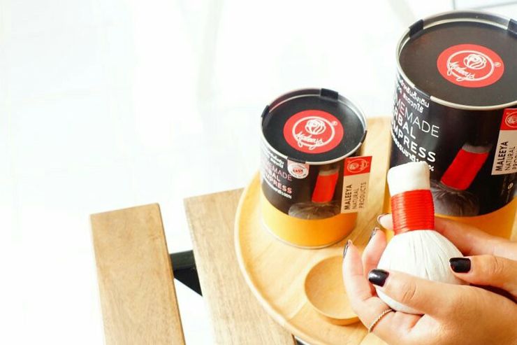 ลูกประคบของ Maleeya Natural เป็นสูตรโบราณดั้งเดิมที่คัดสรรสมุนไพรมากกว่า 10 ใส่ลงไป ที่เด่นๆ คือ ไพรและว่านนางคำอบแห้ง มีคุณสมบัติช่วยผ่อนคลายกล้ามเนื้อ ผลิตโดยกลุ่มแม่บ้านที่มีภูมิปัญญาด้านนี้โดยเฉพาะ นุ่นนำมาปรับใช้ใหม่ ทำแค่ 2 ขั้นตอนเท่านั้น ไม่ต้องนึ่งให้เสียเวลา แค่นำลูกประคบแช่น้ำแล้วนำเข้าไมโครเวฟทำให้ร้อนแล้วนำมาใช้ได้เลย ใช้ง่ายและรวดเร็ว แต่ถ้าใครอยากนึ่งแบบดั้งเดิมก็สามารถทำได้เช่นกัน 1 ลูกสามารถใช้ซ้ำได้ 4 - 5 ครั้ง