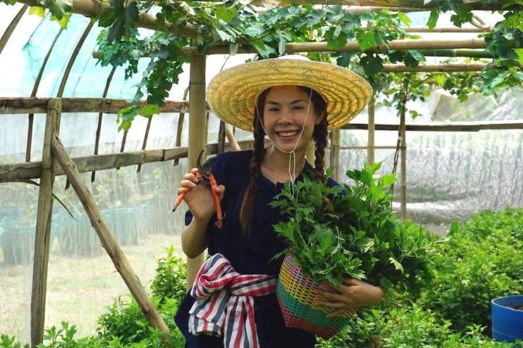 เธอเริ่มจากการขุดบ่อน้ำซึ่งเป็นหัวใจหลักของการทำเกษตร ในบ่อเลี้ยงปลาหลายชนิด ทั้งเลี้ยงกุ้ง (กุ้งฝอย กุ้งก้ามแดง) พื้นที่บนบกทำโรงเรือนไม้ไผ่ไว้สำหรับการเพาะพันธุ์กล้าไม้ กิ่งไม้ขาย ปลูกชา หม่อน ปลูกผัก และผลไม้ต่างๆ หมุนเวียนเปลี่ยนไปตามฤดูกาลและความต้องการในตลาดเป็นสำคัญ สิ่งสำคัญไม่ว่าทำอะไรจะประเมินศักยภาพและกำลังของตัวเองทำได้แค่ไหน