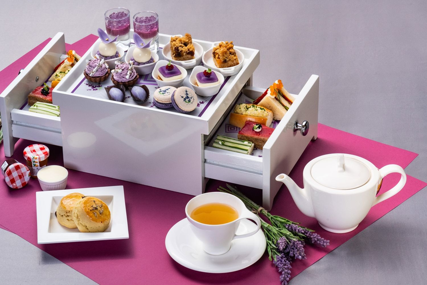 จุดเด่นที่นำเสนอของความพิเศษครั้งนี้ เชฟเซบาสเตียน ฮูแกแวร์ฟ (Sebastiaan Hoogewerf ) หัวหน้าพ่อครัวเบเกอร์รี่ (Executive Pastry Chef) ได้นำสีและกลิ่นของดอกลาเวนเดอร์มาใช้ออกแบบขนมในชุดน้ำชายามบ่ายสีม่วงธีมลาเวนเดอร์ เพื่อให้ทุกท่านเพลิดเพลินกับการจิมน้ำชายามบ่ายราวกับนั่งอยู่ท่ามกลางความงดงามของทุ่งดอกลาเวนเดอร์ในประเทศญี่ปุ่น