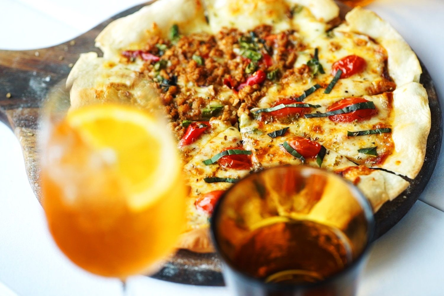 ส่วนที่มาแล้วต้องมุ่งตรงไปยกให้พาสต้าและพิซซ่า ที่จัดหนักมาเต็มเสิร์ฟไม่อั้น พิเศษขึ้นอีกด้วยการปรุงแบบ A La Minute อบกันถาดต่อถาด ผัดกันจานต่อจานตามสั่ง จะเลือกแบบฮาล์ฟๆ สองหน้าในถาดเดียวก็ได้ ส่วนท็อปปิ้งของของพิซซ่าก็มีให้เลือกหลายอย่าง อาทิ Margherita, Hawaii, Siciliana, Paradiso, Vegetarian, Green Curry Chicken และ BBQ Chicken เริ่มต้นเบสิกด้วย Margherita มอซซาเรลร่าชีสกับซอสมะเขือเทศแบบออริจินอล อัพเลเวลความอร่อยต่อเนื่องด้วย พิซซ่าหน้าผัดกะเพราไก่ เขียวหวานไก่ ที่ได้อารมณ์ฟิวชั่นไทยในพิซซ่าแป้งบางกรอบ รับรองฟินอย่าบอกใคร