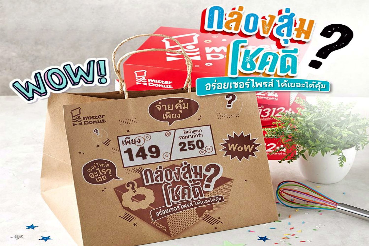 เริ่มแล้ววันนี้ อร่อยเซอร์ไพร์ส ได้เยอะได้คุ้ม 'มิสเตอร์ โดนัท' ชวนลุ้นรสความอร่อยเมื่อแกะกล่อง ไปกับ “มิสเตอร์ โดนัท กล่องสุ่ม โชคดี” เริ่มต้น 100 บาท รับส่วนลดเมนูลับสูงสุดกว่า 50%