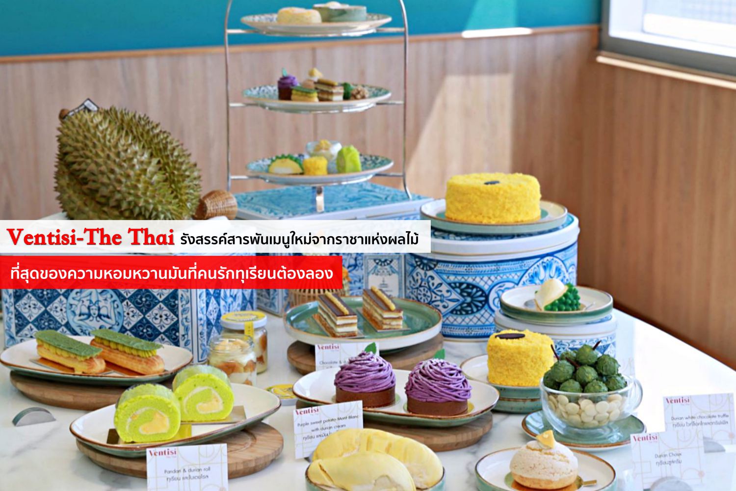 โดย Ventisi-The Thai นำเสนอเมนูทุเรียนน้องใหม่ที่หอมหวานยั่วใจคนรักทุเรียนขั้นสุด ด้วย 11 เมนูแสนอร่อยสุดน่ากินที่พร้อมให้ทุกคนได้สัมผัสความอร่อยของรสทุเรียนในรูปแบบที่หลากหลาย ไม่ว่าจะเป็น ชูครีมทุเรียน, พิตาชิโอเอแคลร์ครีมทุเรียน, แยมโรลทุเรียน, โอเปร่าช็อกโกแลตทุเรียน, ดับเบิ้ลชีสเค้กทุเรียน, มันหวานครีมทุเรียน, มูสทุเรียนและมะพร้าว ในราคาเพียง 140 บาท++ ต่อชิ้น
