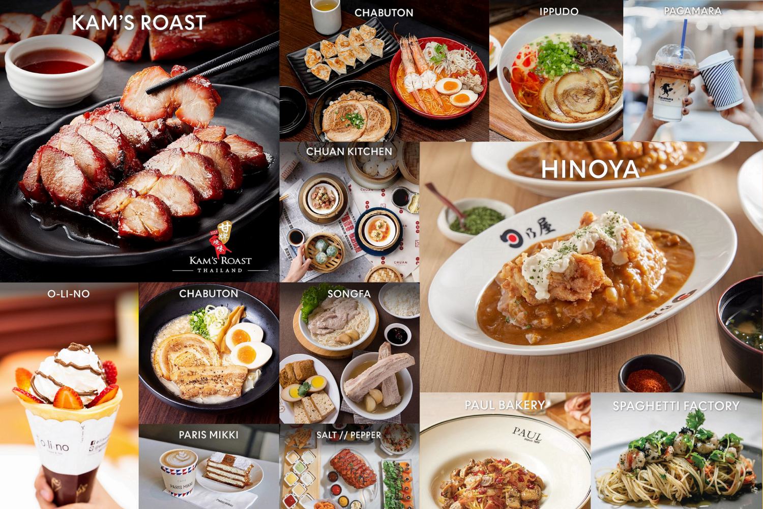 และร้านอื่นๆ อีกมากมาย อาทิ Spicy Cat La Meow, Zheng Dou, Shabushi, Yayoi, Hinoya, Sizzler, Salt//Pepper, Mos Burger, Spaghetti Factory, Haidilao, MK Live, MK Restaurants, Toku Dessert, Olino, Paul Bakery, Cold Stone Creamery, LeTAO, The Rolling Pinn, Haagen-Dazs, Chiatoro, Squeeze, Seven Suns, Pacamara, คำพูน, แหลมเจริญ, สนั่นอาหารทะเล, แม่ศรีเรือน รวมถึงอาหารกล่องจากโรงแรม Centara, Food World, Food Hall พร้อมส่วนลดและโปรโมชั่นมากมาย