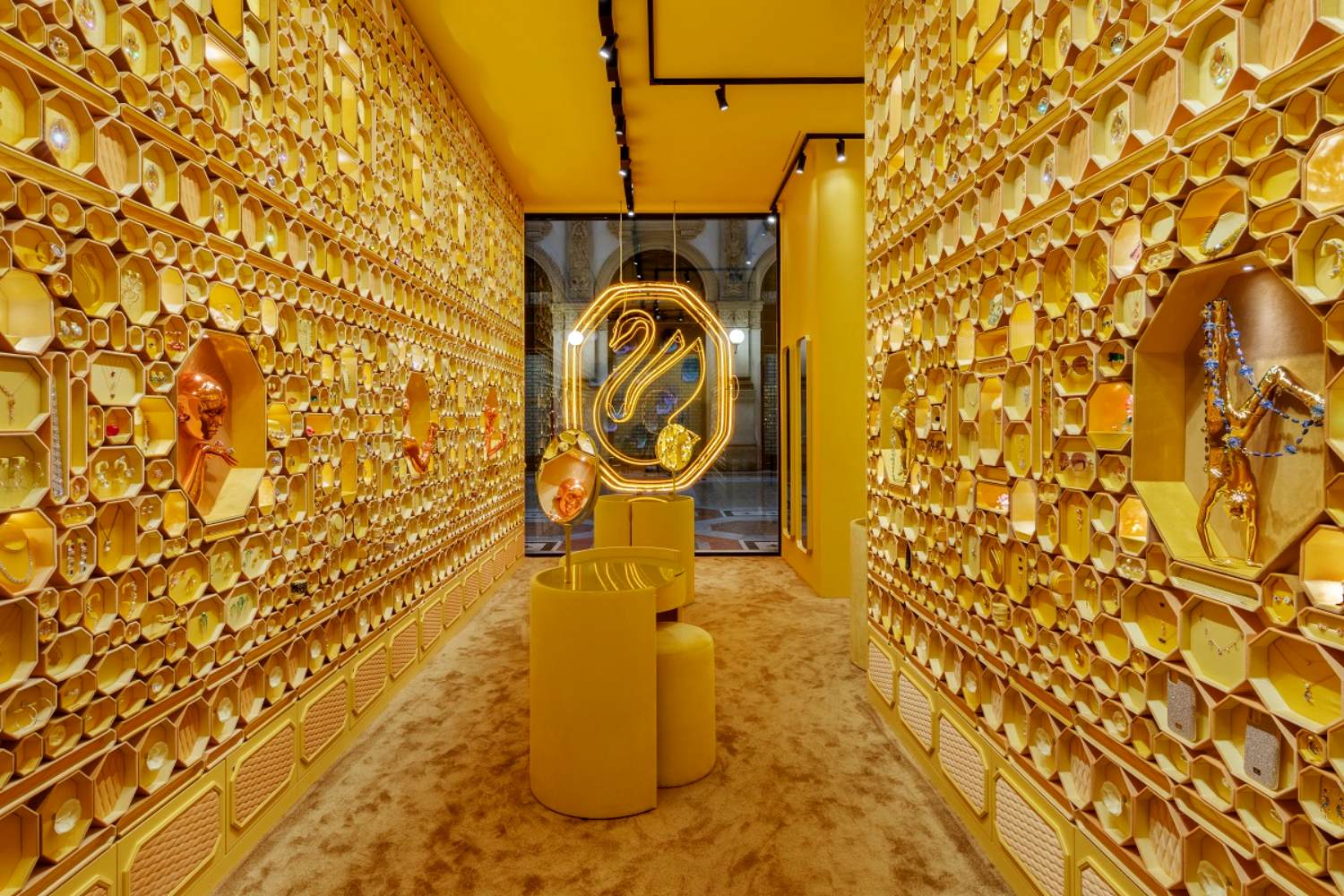 ด้วยการออกแบบที่สะท้อนถึงแคมเปญที่กำลังจะเปิดตัวพร้อมความเจิดจรัสรูปแบบใหม่ แขกผู้มาเยือนทุกคนจะได้รับการต้อนรับสู่สถานที่ที่เต็มไปด้วยสีสันอันมีชีวิตชีวา การผสมผสานของวัสดุ ประติมากรรม และแนวคิดการสร้างสรรค์ใหม่ ๆ เพื่อค้นหาเสน่ห์ในตัวเอง และจุดประกายความมั่นใจให้กับทุกคน ร้าน Instant Wonder จากสวารอฟสกี้ พร้อมมอบประสบการณ์ความมหัศจรรย์ดั่งความฝันให้เกิดขึ้นจริง ด้วยชิ้นส่วนของคริสตัลที่ประดับประดาราวกับลูกกวาด ซึ่งถูกเติมเต็มด้วยเครื่องประดับชิ้นต่าง ๆ อาทิ สร้อย นาฬิกา เครื่องประดับตกแต่งบ้าน รวมถึงภายในแกลเลอเรียที่ถูกแต่งแต้มด้วยฉากหลังของภาพเงาโลโก้แปดเหลี่ยมโฉมใหม่ของสวารอฟสกี้ที่ทำจากแพ็กเกจจิ้งใหม่