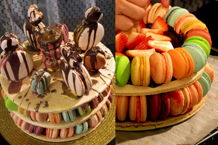 ขนมเค้กมาการองที่หรูหราที่สุด ประกอบไปด้วยมาการองกว่า 100 ชิ้น มีไส้ขนมทำมาจากผลไม้สด เช่น ส้ม เสาวรส เกาลัด ราสเบอรี่ สตอเบอรี่ บลูเบอรี่ มะม่วง กาแฟ ช็อกโกแล็ต มอคค่า ลิ้นจี่ กล้วย กุหลาบ และผลไม้อีกหลายชนิดที่มีรสแตกต่างกันถึง 20 รสชาติ ตัวมาการองทำจากอัลมอนด์ชั้นดี สำหรับเค้กก็ใช้แป้งจากฝรั่งเศส เนยก็นำเข้าจากฝรั่งเศส ผสมแต่งกลิ่นด้วยวนิลาแท้คุณภาพสูงสุดจากเกาะมาดากัสกา