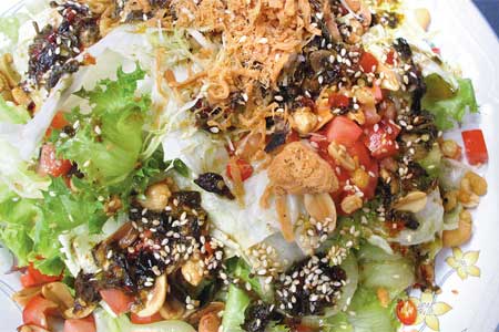 “เปาะเปี๊ยะสด” นี่ก็อร่อย ได้สุขภาพสไตล์เวียดนาม “สลัดใบชาพม่า” สารพัดผักราดด้วยน้ำสลัดที่ให้กลิ่นใบชาพม่าฉุนนิดๆ แปลกดี อีกเมนูที่ฮิตติดลมบน “ข้าวมันไก่ทอด” เจ๊หลีไม่ใช่กลูเตนเลียนแบบเนื้อสัตว์ เจ๊ว่าไม่ค่อยอร่อย เจ๊เลยใช้เห็ดเข็มทองแทน ชุบแป้งทอดคล้ายไก่ทอด เสิร์ฟเป็นข้าวมันไก่ทอดจนลูกค้าติดอกติดใจ