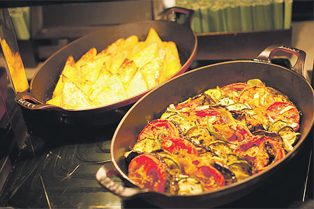นอกจากอาหารจากหม้อเคลือบสไตล์บิสโทรไม่ว่าจะเป็น หมู เห็ด เป็ด ไก่ แกะ ที่ผัดเปลี่ยนหมุนเวียนมาให้ตักชิมทุกวันเสาร์แล้ว ยังมีสลัดบาร์มากมายรวมทั้งซีฟู้ดบนน้ำแข็งและอาหารย่าง ฯลฯ ที่พลาดไม่ได้คือ ทาร์ทาร์เนื้อ สเตชันสุดฮิตพอๆ กับซีซาร์สลัดที่ปรุงสดๆ คอยเสิร์ฟทุกคน