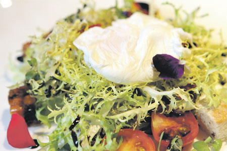 ที่ออกตัวว่าก่อนดื่มอะไรให้รองท้องด้วย Pizza di Mediterranean (Tomato Tart) แล้วถ้ามีสาวๆ หรือเด็กๆ มาร่วมวงด้วยต้องสั่ง Onions Tart “Pissaladiere” (Provencal Style) และ Country Style Salad (Frisee with Bacon Bits, Croutons & Poached Egg) รวมถึงตบท้ายด้วย Peach Melba & Vanilla Ice Cream