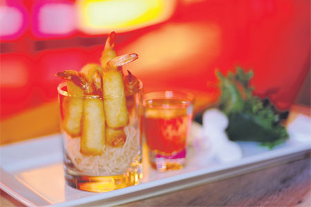 สำหรับเมนูจะเป็นอาหารเบาๆ ประเภทสแน็ก ทั้งอาหารทานเล่นสไตล์ยุโรปและแบบไทยๆ ที่ไปกันได้สวยกับเครื่องดื่มลวงตาอย่างค็อกเทล และไวน์ นานา อย่าง ม้าฮ่อ และเปาะเปี๊ยะกุ้ง รับประทานง่ายๆ