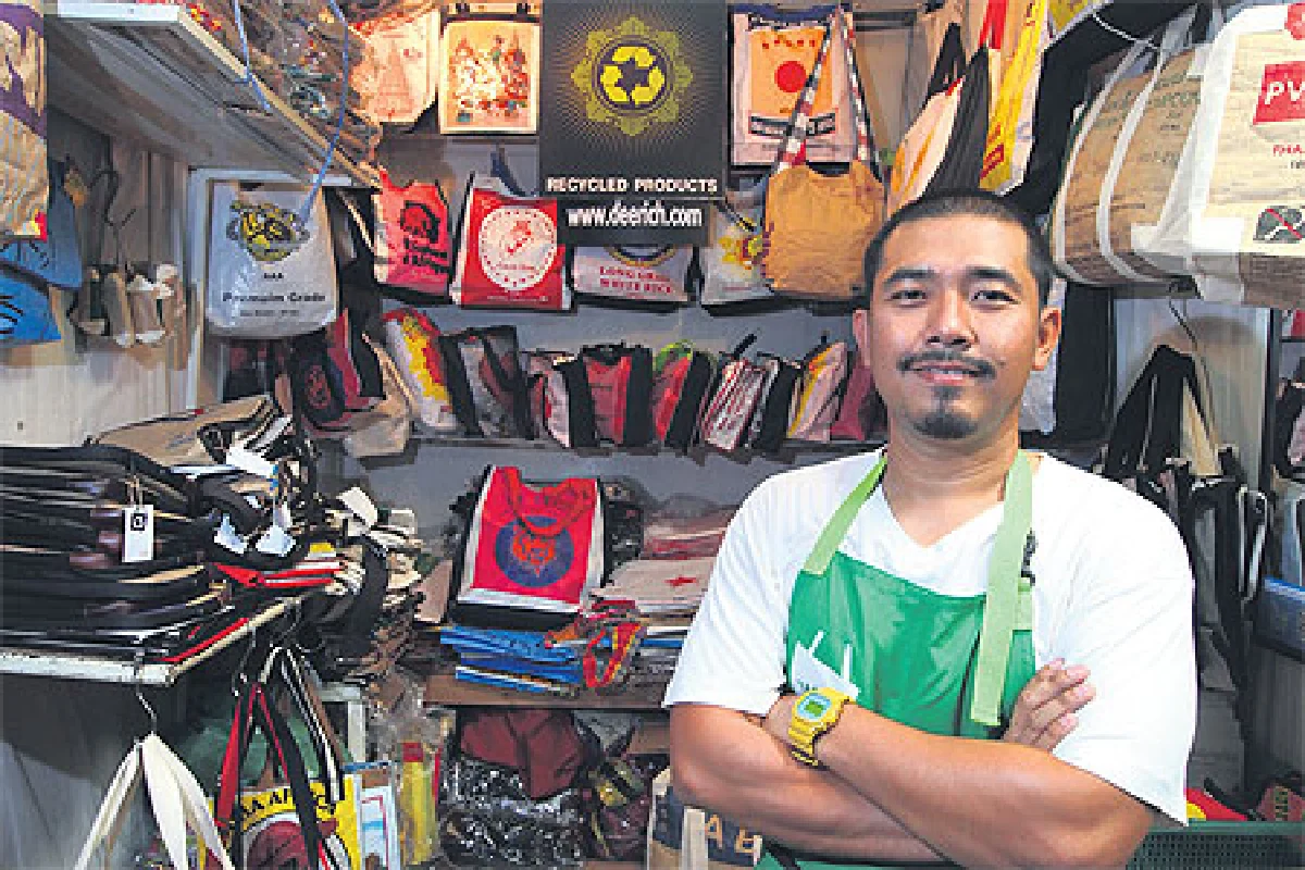 สมัยนี้จะทำธุรกิจ จะคิดแต่เอามัน ตามใจฉัน คงไม่ได้ เพราะถ้าจะให้รุ่งโดนใจลูกค้า นอกจากดีไซน์ของสินค้าจะต้องโดดเด่น มีสไตล์แล้ว ยังต้องอิงกับเทรนด์โลกที่กำลังมาแรงในเวลานั้นด้วย จากจุดเริ่มต้นนี้เองทำให้ น๊อตอภิชาต มณีชาติ บัณฑิตหนุ่มสาขาออกแบบภายใน จากมหาวิทยาลัยศิลปากร ตัดสินใจหันมาหาธุรกิจที่มีอนาคตอย่างการทำกระเป๋าจากกระสอบ ซึ่งถือเป็นสินค้ารีไซเคิลที่กำลังเข้ากับกระแสรักษ์โลกตอนนี้เอามากๆ