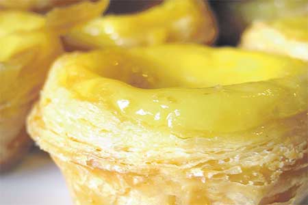 “ขนมกวยตัส” (หรือกวยตั๊ก) หน้าตาเหมือนกับพายมาก ยิ่งใส่ไส้สับปะรดก็นึกว่าพายสับปะรด แต่ไม่ใช่นะเออ ทำจากแป้ง จับจีบรอบๆ นำไปทอดในน้ำมันร้อน ตักขึ้นผึ่งให้เย็น ใส่สับปะรดกวน ขนมโปรตุกีสอีกชนิดที่นิยมกันในหมู่วัยรุ่นก็คือ “ทาร์ตไข่” ที่มาเก๊า ฮ่องกง ก็มีทาร์ตไข่ ที่เมืองไทยก็มี ไม่หนีห่างกันเท่าไหร่ ทาร์ตไข่ให้รสหนักแน่น หวาน มัน แป้งพัฟฟ์กรอบ อบจากเตาร้อนๆ ห้อมมมม---หอม
