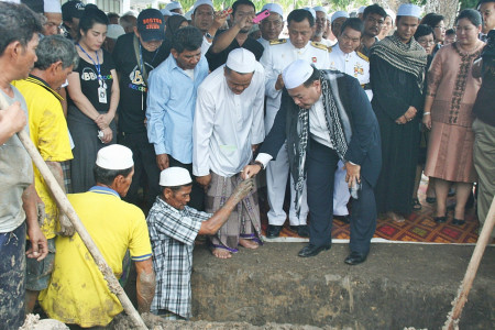 นายปรีดา เชื้อผู้ดี ที่ปรึกษาจุฬาราชมนตรีได้อัญเชิญดินพระราชทานมาที่มัสยิดเนี๊ยะมาติ้ลและห์ ซอยโรงเรียนวัดลากฆ้อน หมู่ 3 ต.หน้าไม้ อ.ลาดหลุมแก้ว จ.ปทุมธานี เป็นสถานที่ตั้งประกอบพิธีทางศาสนาอิสลามศพ พ่อหวังเต๊ะ ครูลำตัดชื่อดัง ราชาเพลงพื้นบ้านศิลปินแห่งชาติสาขาศิลปะการแสดง ปี 2531 ที่สิ้นชีวิตลงด้วยโรคมะเร็งตับ เมื่อคืนที่ผ่านมา เวลา 03.10 น. ที่โรงพยาบาลบำรุงราษฎร์ ด้วยวัย 87 ปีและต่อจากนั้ได้นำร่างของหวังเต๊ะไปยังกุโบซึ่งอยู่บริเวนด้านข้างของมัสยิดที่ได้เตรียมไว้สำหรับฝังร่างของราชาลำตัดของเมืองไทย ซึ่งในช่วงเวลาทำพิธีฝังศพได้มีผู้ที่รู้ข่าวเดินทางมาร่วมงานและไว้อาลัยประมาณ 1,000 คน