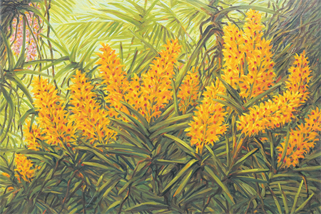 เพราะความสดสวยน่าอัศจรรย์ของมวลบุปผนานาพันธุ์นี้เอง ทำให้ รุ่งพันธุ์ บุรุษชาติ เก็บเอาภาพความประทับใจเบื้องหน้ามาแต่งเติมสีสัน ระบายพู่กันลงบนผืนผ้าใบ จนกลายเป็นผลงานศิลปะชิ้นเยี่ยม