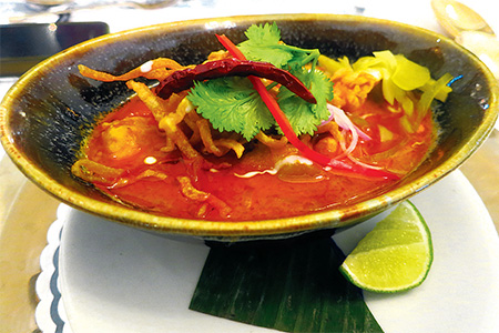 จานเด็ดอีกจานต้องยกให้ (ความชอบส่วนตัวของผู้เขียน อิอิ) ข้าวซอยซี่โครงหมูอ่อน (หรือไก่บ้าน) ข้าวซอยตำรับอาหารเหนือแท้ๆ เลือกได้ว่าจะกินซี่โครงหมูหรือจะเป็นไก่บ้าน เสิร์ฟพร้อมหอมแดงซอยและผักกาดดอง
