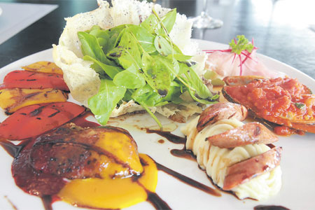 ตามกันต่อกับเมนูที่ผู้ชื่นชอบอาหารทะเลไม่ควรพลาดอย่างยิ่งกับ ทูน่าทาท่าพล่ามาแฮม ทั้งทูน่า ปลาหมึก หอยเชลล์ และฟัวกราส์ชั้นดีจากฝรั่งเศส ถูกนำมามิกซ์เป็นความอร่อยอยู่ในจานเดียว รับประทานคู่กับเลมอนซอสแคปเปอร์ แหม...ลิ้มน้ำจิ้มซีฟู้ดกันไปเลยงานนี้