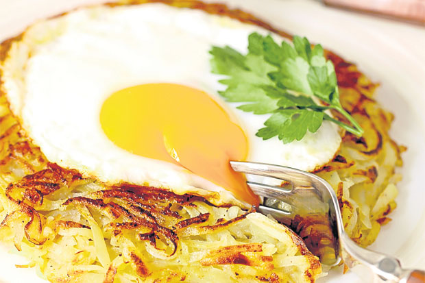 เมื่อคุณเห็นรอสตีในแบบฉบับสวิส อาจนึกคล้ายกับสิ่งที่เราคุ้นเคยในชื่อแบบอเมริกัน หรืออังกฤษที่เรียกว่า Hashbrown มันฝรั่งที่หั่นเป็นชิ้นเล็กๆ นำมาเคล้ารวมกับเครื่องปรุง เช่น เกลือ พริกไทย แล้วทอดจนสุก ผิวที่สัมผัสความร้อน กลายเป็นสีน้ำตาลทองดูน่ากิน ต่างกันตรงที่ Hashbrown มักเป็นชิ้นเล็ก เสิร์ฟมาหลายๆ ชิ้น แต่สำหรับ Rosti แบบสวิส มันฝรั่งจะขูดเป็นเส้นยาว หนากว่ามะละกอในส้มตำสักหน่อย อัดแน่นตามรูปร่างและขนาดของกระทะแบนสไตล์ตะวันตก เสิร์ฟมาเป็นวงกลมหนาสัก 1 นิ้วในจานใหญ่ มองเห็นสีน้ำตาลทองของเส้นมันฝรั่งที่สัมผัสความร้อน เรียงสลับกับเส้นมันฝรั่งที่สอดแทรกอยู่ด้านใน สุกเหลือง แต่ไม่โดนความร้อนโดยตรง