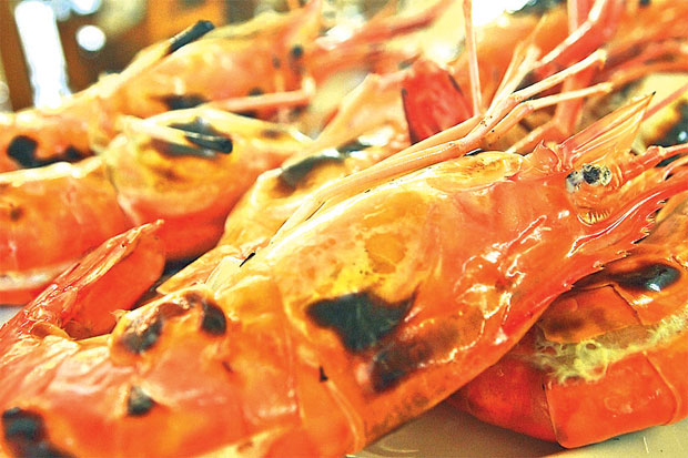 เจ๊ต้อยเริ่มแนะนำเมนูที่ลูกค้ามาทีไรเป็นต้องสั่งทุกที คือ กุ้งแม่น้ำเผา มีกุ้งแม่น้ำหลายขนาดให้เลือก ราคาก็แตกต่างกันไป “กุ้งแม่น้ำ” ตัวโตๆ ก็กิโลละ 800 บาท ซึ่งไม่แพงเลย เนื้อกุ้งเน้นๆ บวกกับน้ำจิ้มรสเด็ด ขอบอกว่า แซ่บเว่อร์จริงๆ ครับ ต่อด้วยเมนูกุ้งอีกหนึ่งอย่าง เป็น “กุ้งก้ามกรามอบวุ้นเส้น” เสิร์ฟมาร้อนๆ ในหม้ออบ ทางร้านเลือกใช้กุ้งก้ามกรามตัวใหญ่นำมาอบกับวุ้นเส้น ใส่เครื่องอบอย่างขิง พริกไทยดำ ขึ้นฉ่าย ลิ้มรสกุ้งอบวุ้นเส้นหอมกลิ่นพริกไทยดำขึ้นจมูก วุ้นเส้นนุ่มชุ่มถึงรสชาติเครื่องอบรสเข้มข้น ส่วนกุ้งเนื้อหวานอร่อยถูกปากกันไป และยังมีน้ำจิ้มซีฟู้ดรสแซ่บให้จิ้มกินเพิ่มรสชาติอีกด้วย