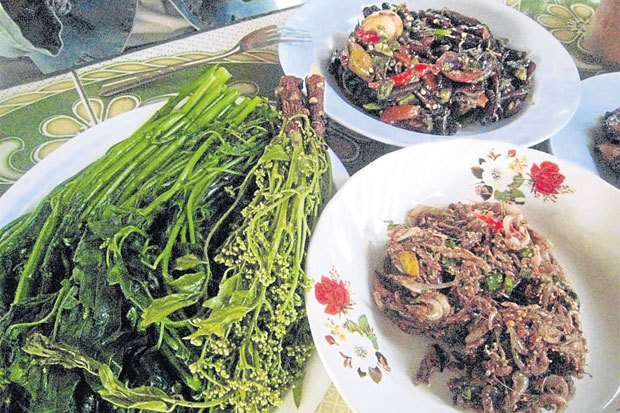 ข้าวเหนียวกำลังสุกร้อนได้ที่ ใครบางคนเดินหายไปเด็ดผักก็หอบกลับมาเป็นกำ พอดีกับที่วงข้าววงใหญ่เริ่มลงมือเปิบกันกลางแจ้ง ทั้งเอร็ดอร่อยและอบอุ่น โอ๊ย เป็นตาแซบ หลาย หรือที่ภาษากลางแปลว่า อร่อยอย่าบอกใครเชียว